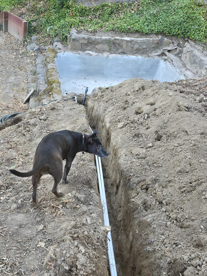 Most of the first year we lived here the pond remained just a faint depression. It had clearly been neglected for decades and filled knee-deep with debris, so the first step was to get it excavated and waterproofed.
